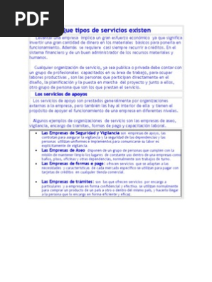 De tarjetas de crédito, entre otros. Los dueños son las organizaciones. Los servicios raramente incluyen una diversidad de actividades que se pueden planificar desempeñadas por un gran número de personas que trabajan para el estado o para empresas particulares;