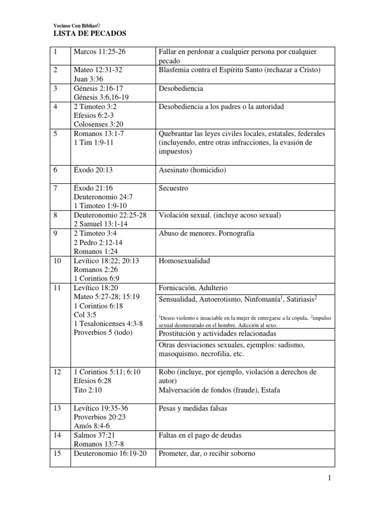 Lista De Pecados Pdf | Pdf | Libros De La Biblia Hebrea | Libros De La Biblia